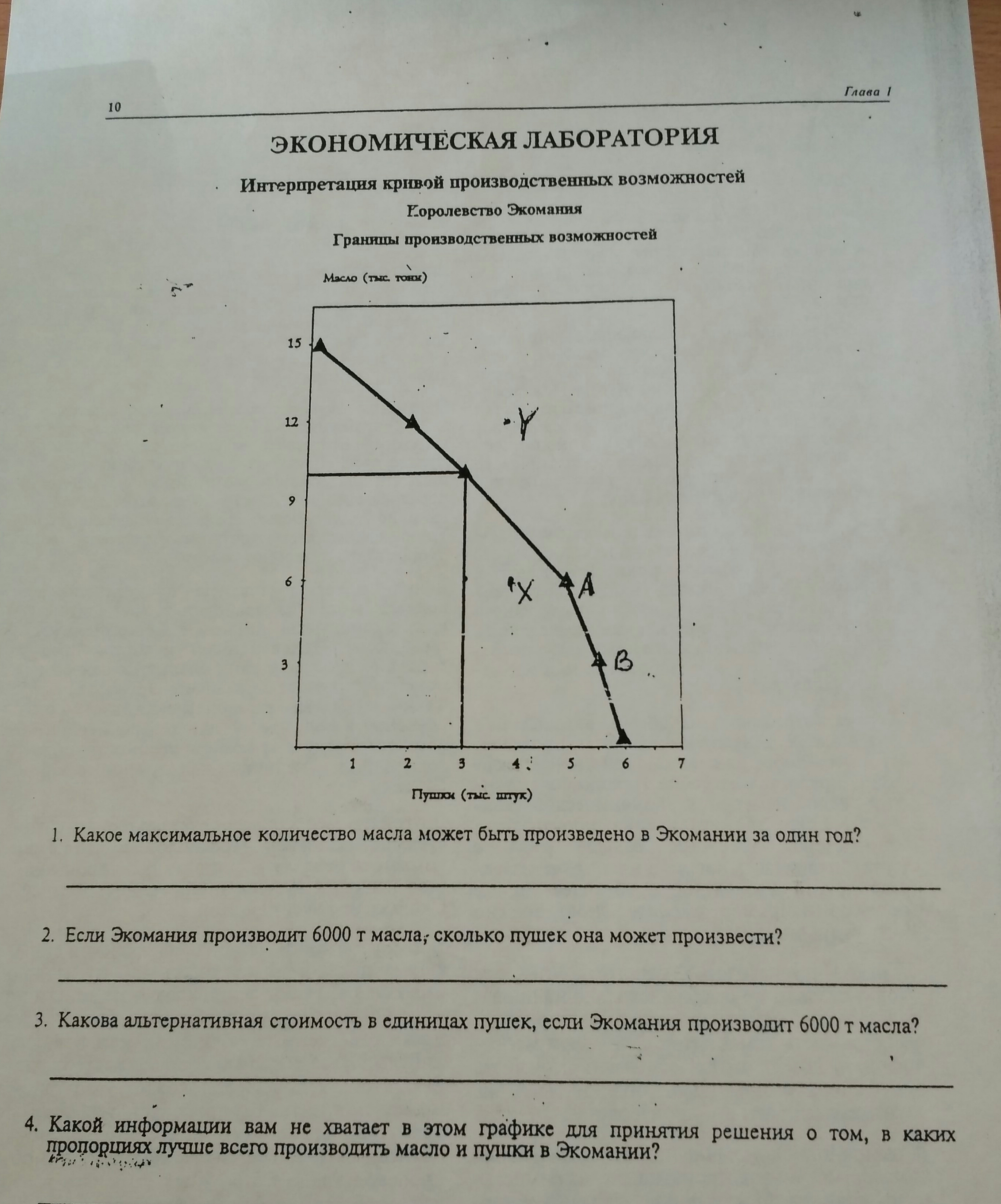 Если треугольные метки на кривой производственных возможностей - это возможные стратегии поведения, то ответы на поставленные вопросы будут следующими:
