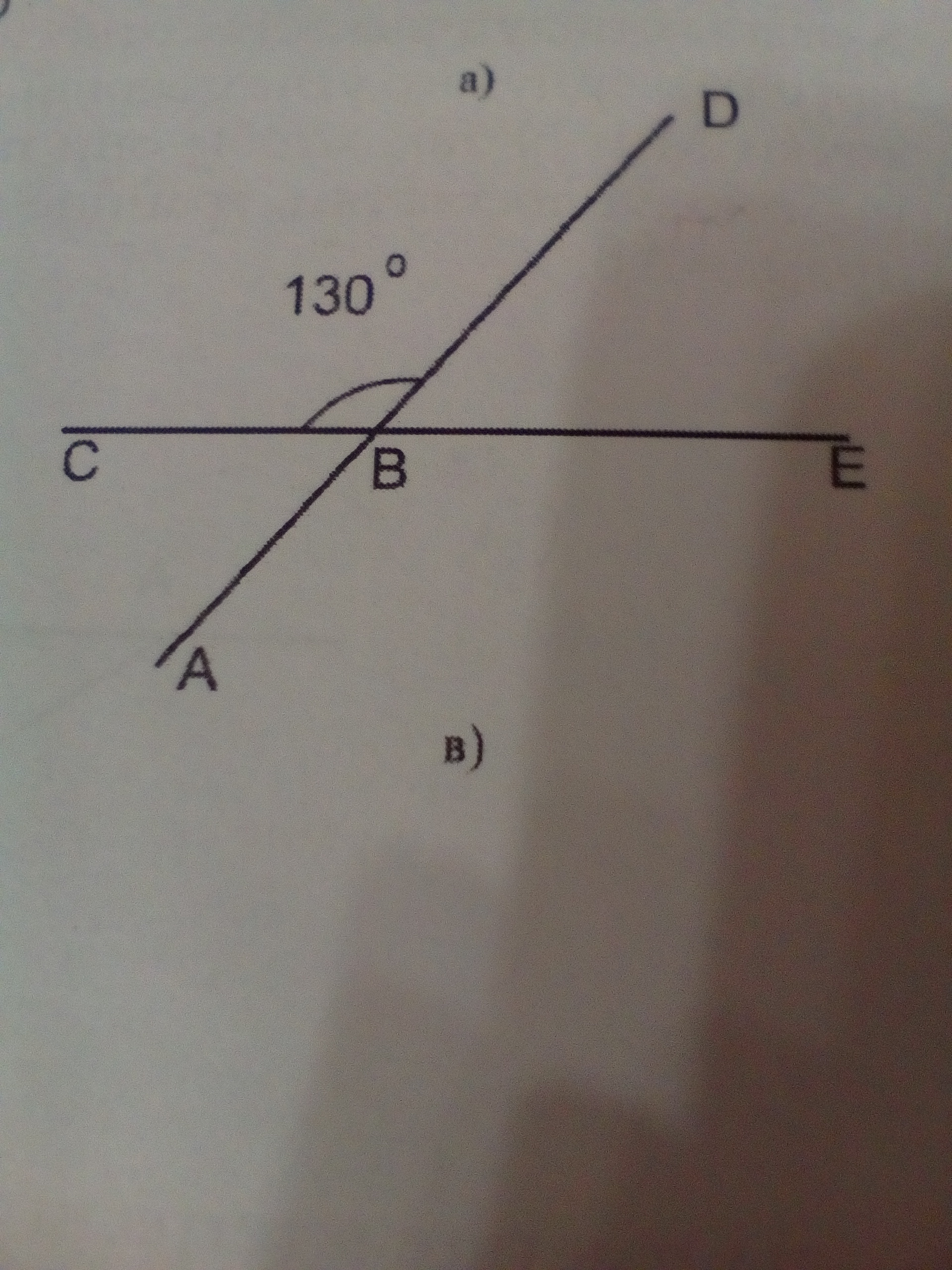 А угол CBD и DBE - смежные, их сумма равна 180 градусам, 180-130=50( DBE)