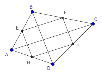 Аналогично FG равен половине BD, GH равен половине AC, EH равен половине BD.