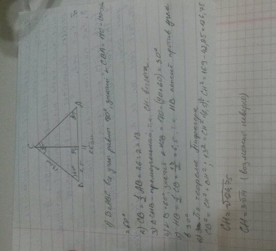 1.в треуг.ABC угол С 90 градусов,CH-высота,угол А равен 30 градусов,AB=26.Найдите СН