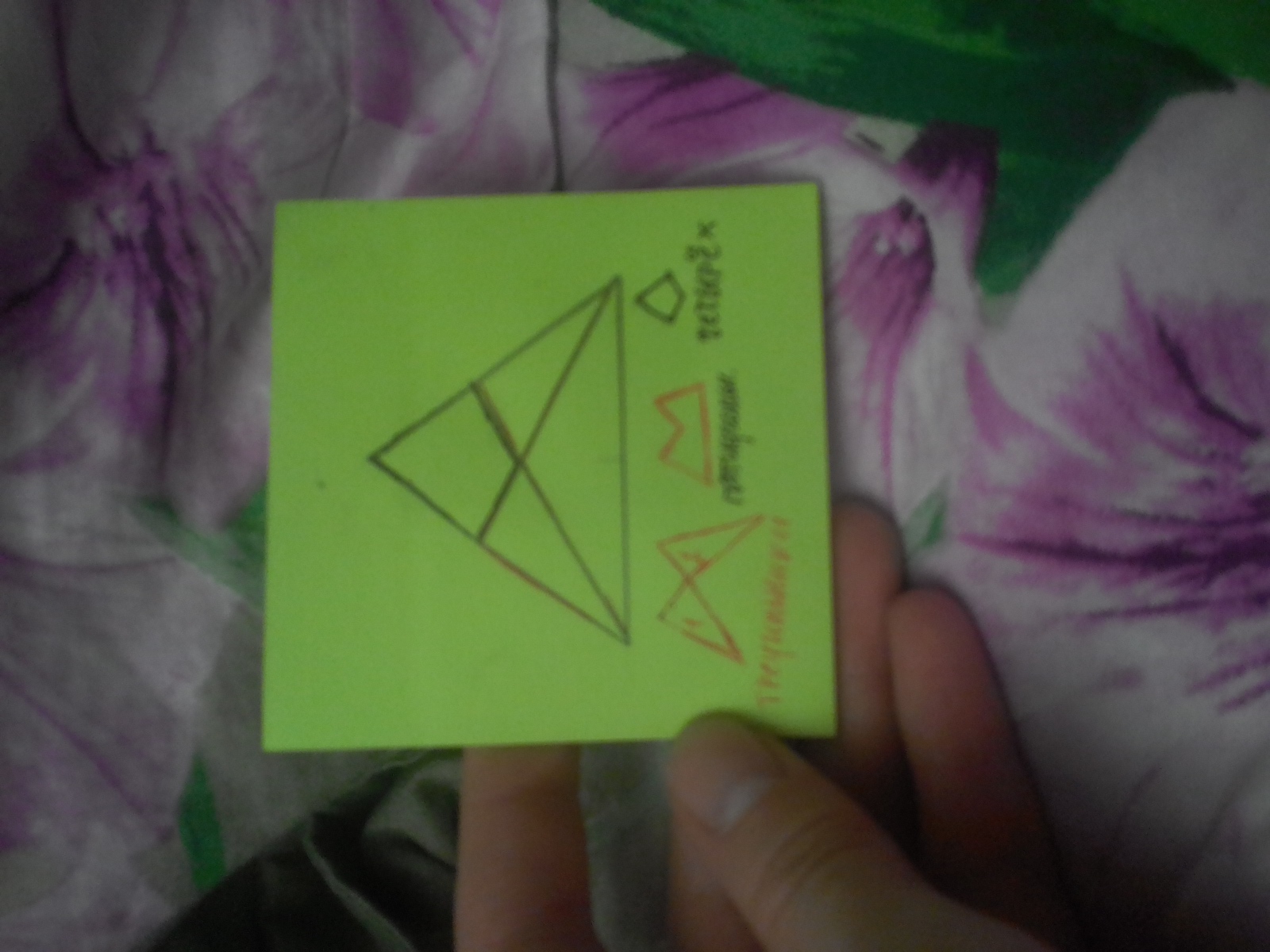 внутри треугольника проведи по 2 отрезка так чтобы данный треугольник разделить на 2 треугольника 1 четырехугольник и 1 пятиугольник