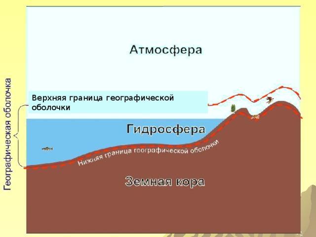 4. Где проводят верхнюю и нижнюю границы географической оболочки? Верхняя граница географической оболочки находится в нижней части атмосферы (озоновый слой),а нижняя на суше -это верхняя часть литосферы, в воде-это дно Мирового океана.Неизменны ли эти границы?Верхняя граница неизменна,а нижняя меняется вместе с изменениями рельефа поверхности земли.