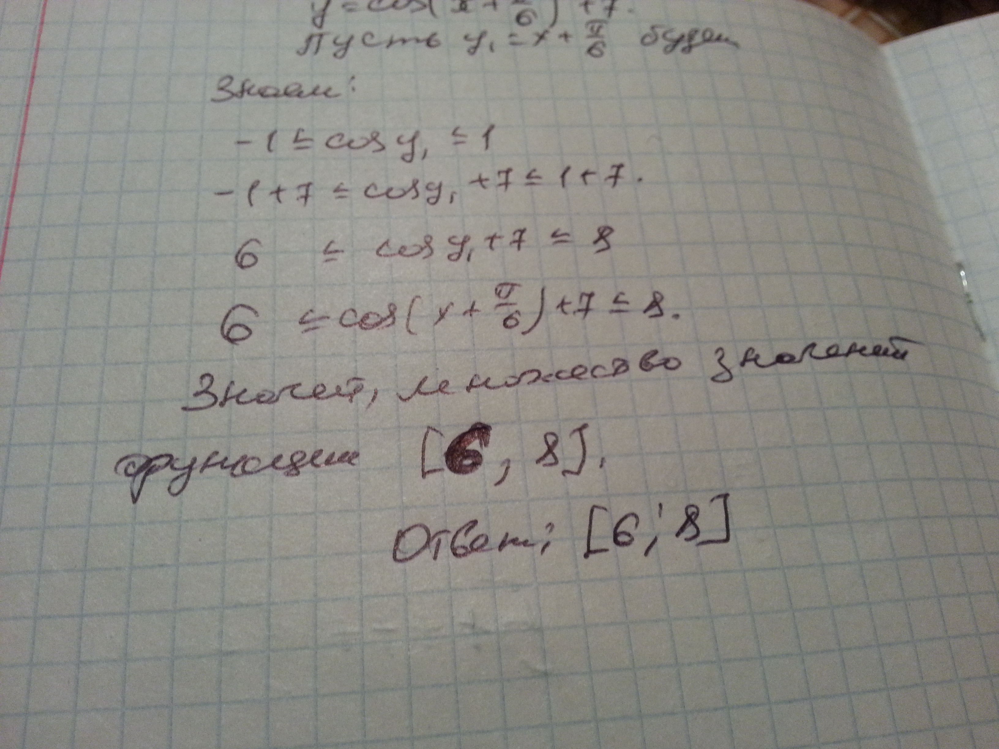У вас небольшая ошибочка. -1+7=6, соответственно ответ будет [6;8). Спасибо за подробное решение