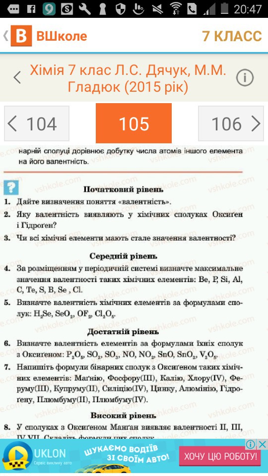 1.Вале́нтність — це властивість атомів одного хімічного елемента з'єднуватися з певним числом атомів інших хімічних елементів