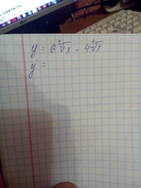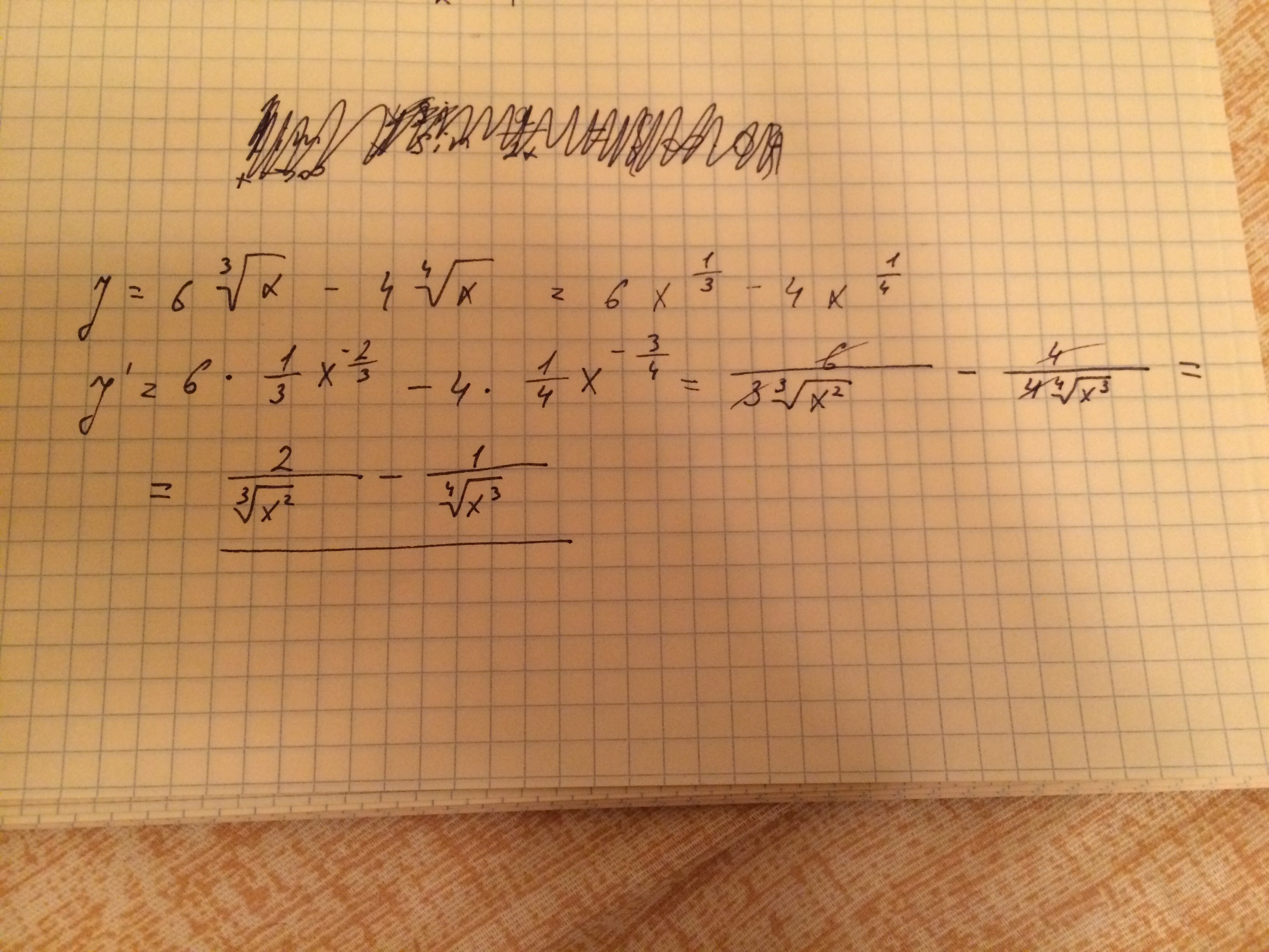 По свойствам степеней переписывает корни третьей и четвёртой степеней и находим производную