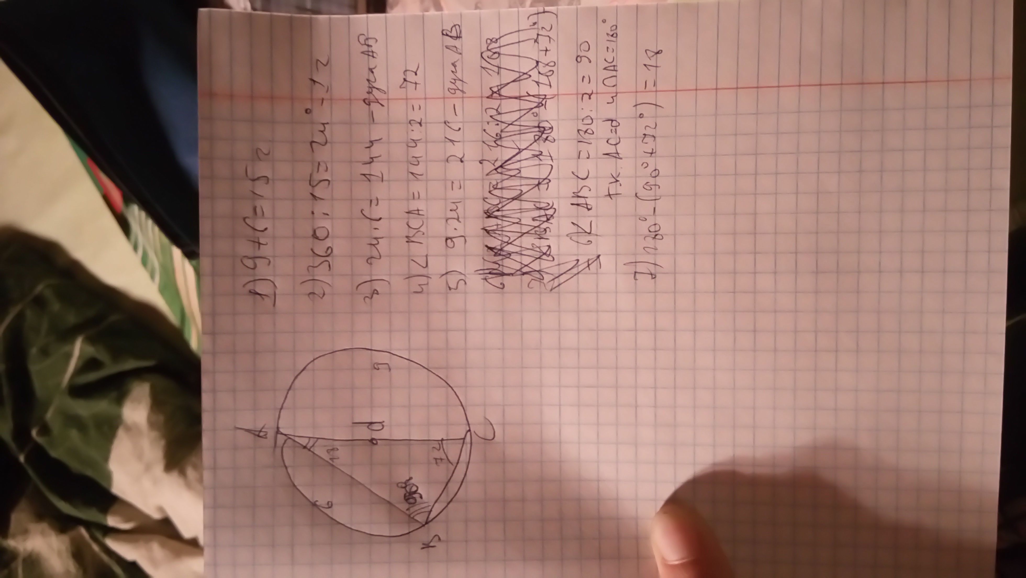 Точки A и B делят окружность на дуги,градусные меры которых пропорциональны числам 6 и 9, AC-диаметр. Найти угла треугольника ABC