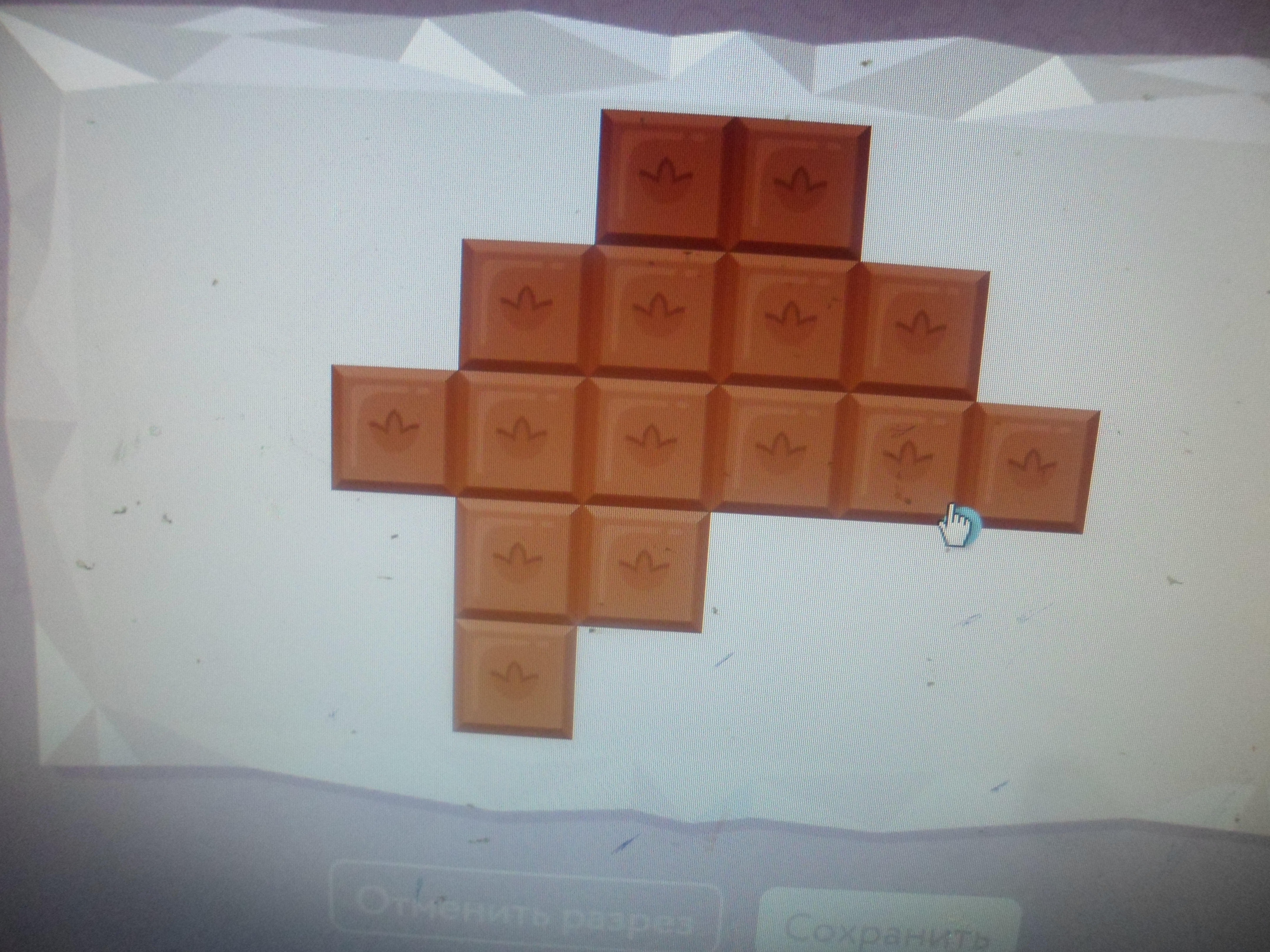 15 : 3 = 5. В каждом получившемся кусочке будет по 5 квадратиков.