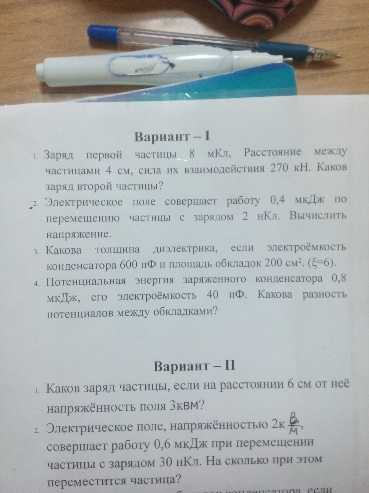 2) A=q*U U=A/q=0,4*10^-6/2*10^-9=200 В