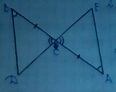 угол В=углу А; ЕА=ВД ; ВС=СА;СД=ЕС; угол ВСД=ЕСА ; по первому признаку равенства треугольников они равны