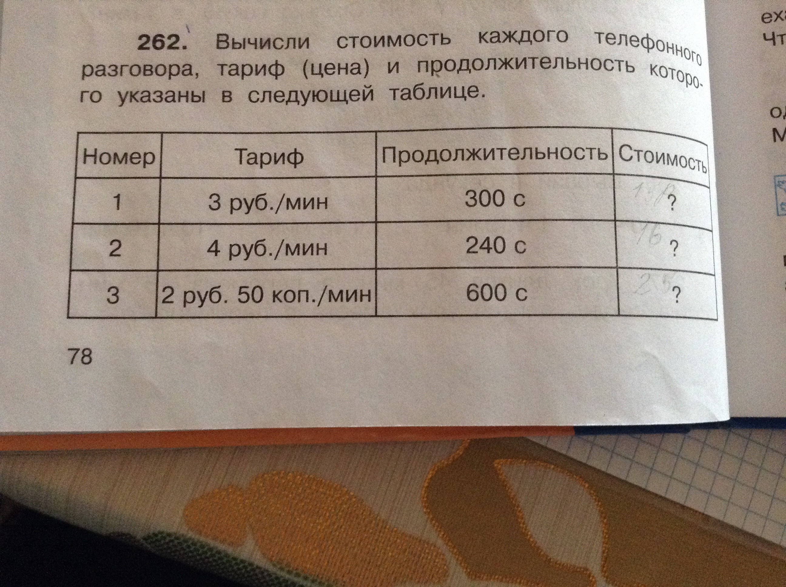 3. 600 с=10 мин (600:60=10) 2 руб 50 коп/мин*10 мин=25 руб