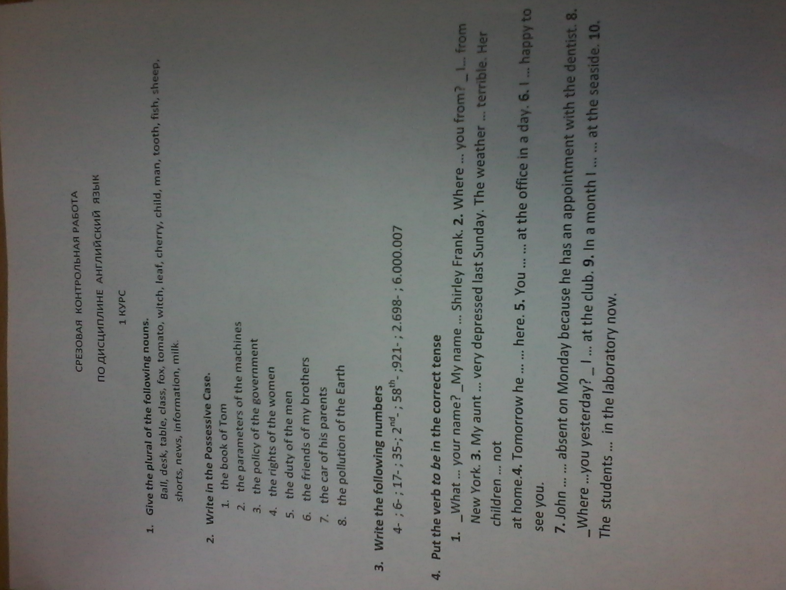 2 Tom's book, machines' parametres, goverment's policy, women's rights, men's duty, my brothers' friends, his parents' car, the Earth's pollution