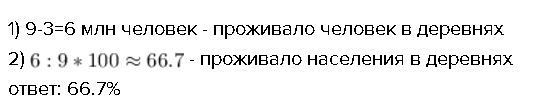 1) 9-3=6 млн человек - проживало человек в деревнях
