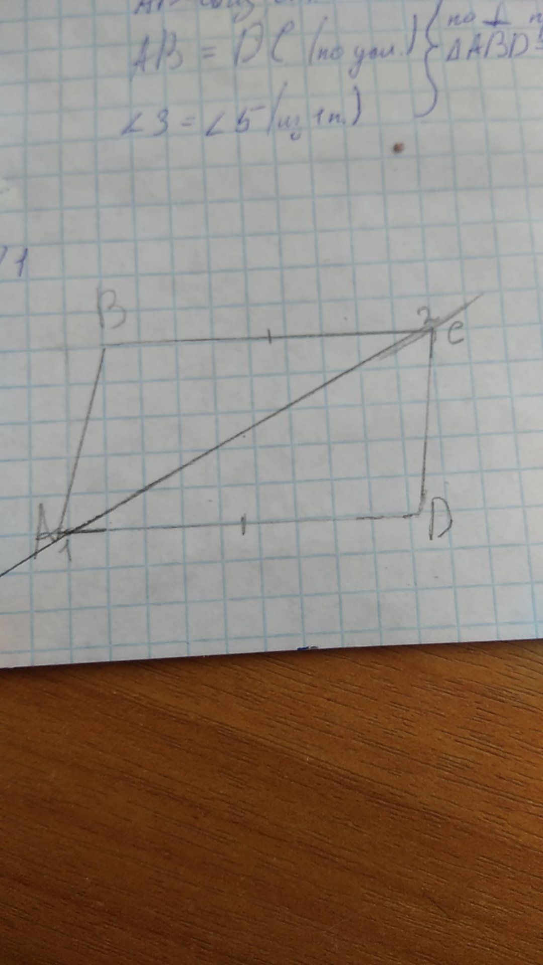 1) Т.к. AD=BC, ∠1=∠2 по условию⇒ АВСD параллелограмм;