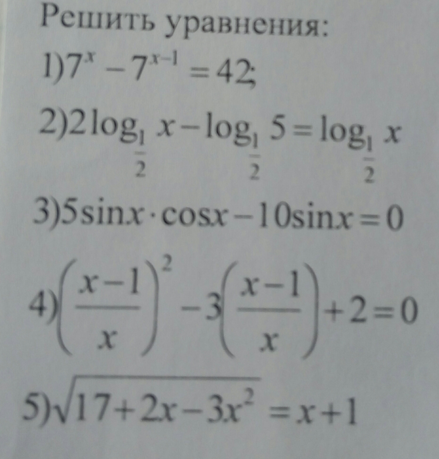 1) 7^x-7^(x-1)=42