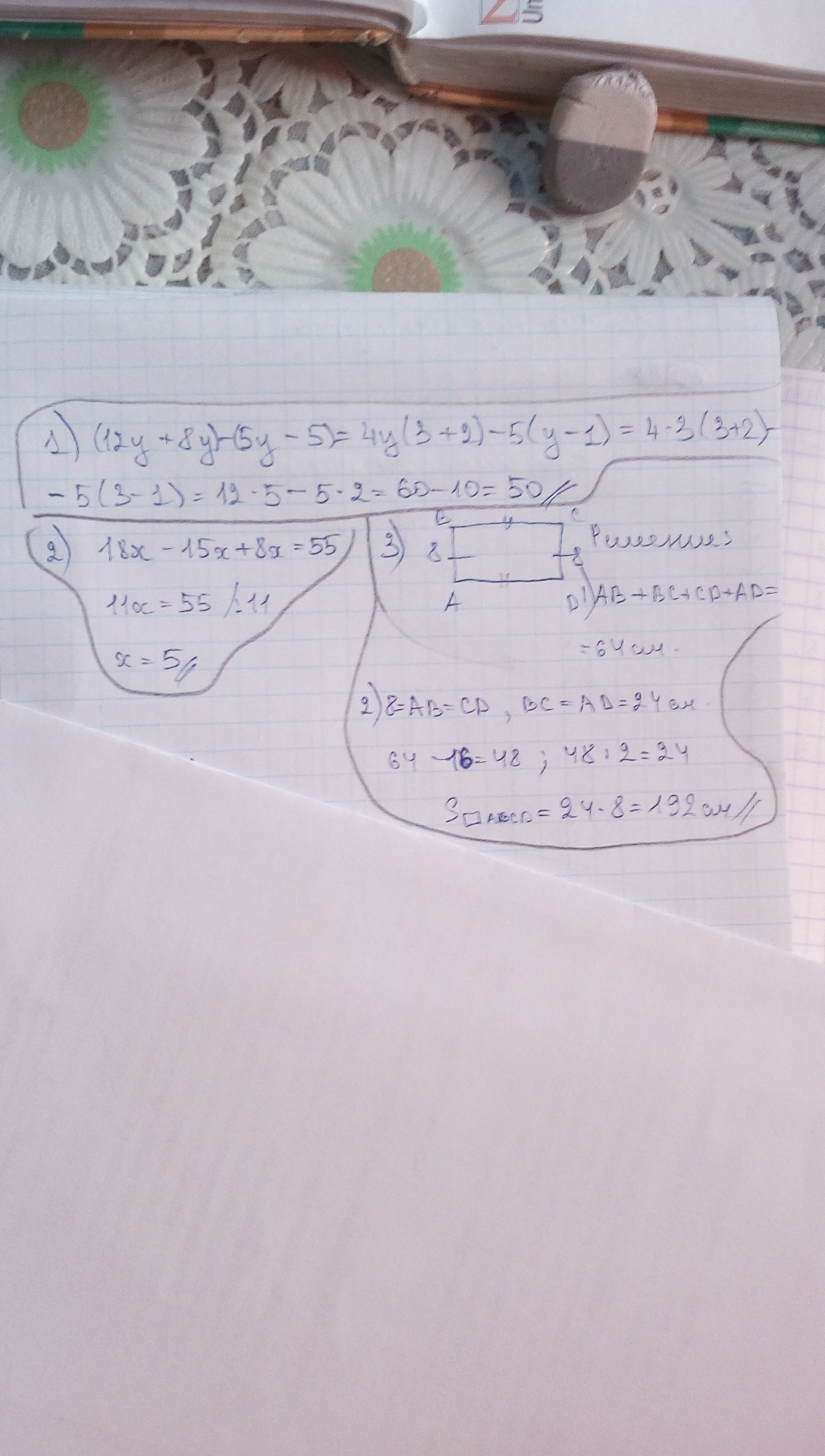 №1 (12у+8у)-(5у-5)=4у(3+2)-5(у-1)=12×5-10=50