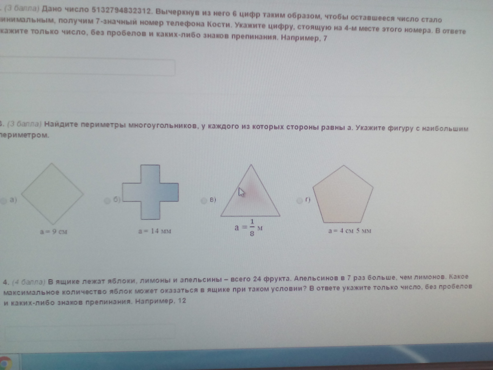 найдите периметры многоугольников, у каждого из которых стороны равны а. укажите фигуру с наибольшим периметром