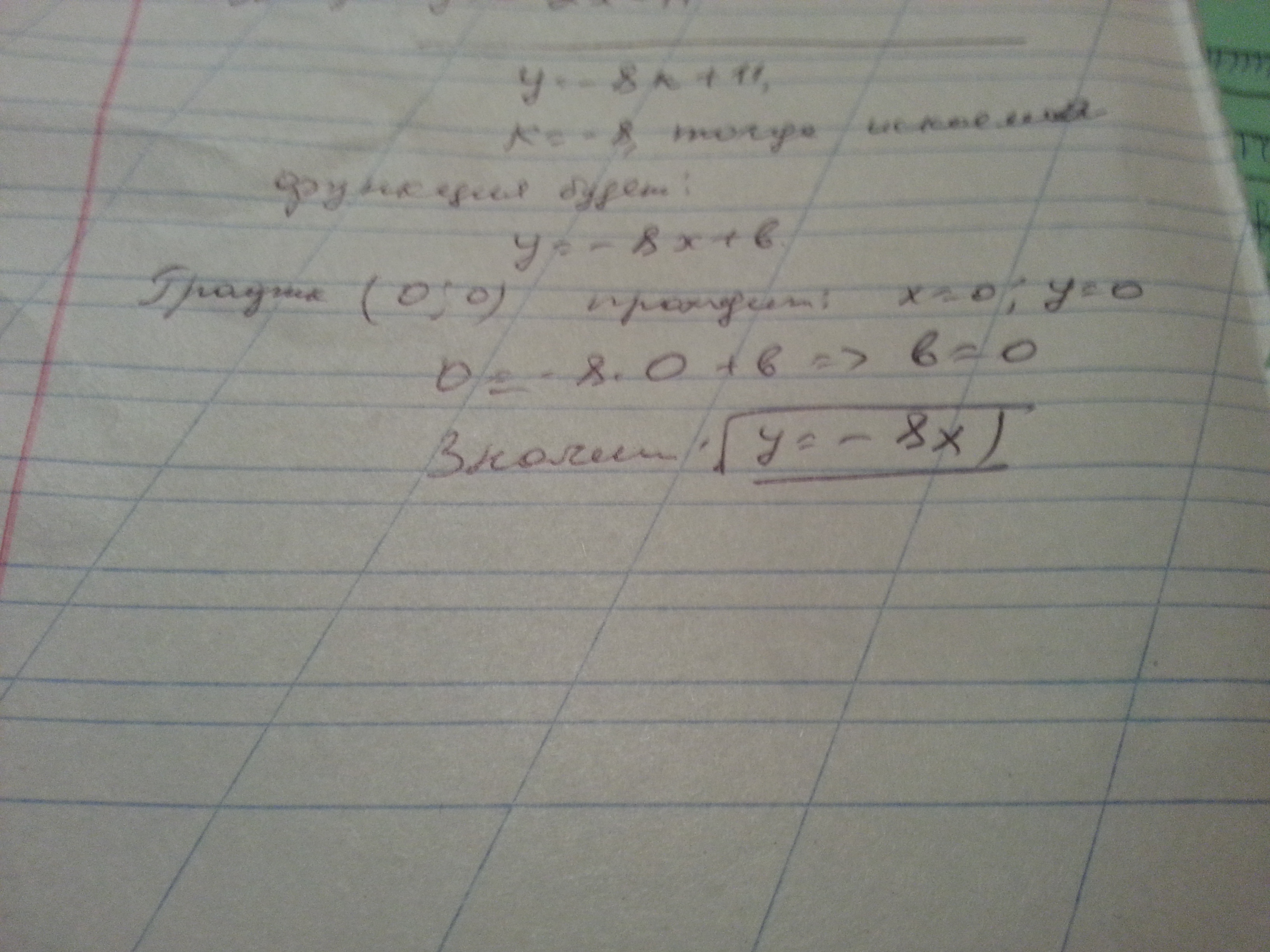 Задайте формулой линейную функцию,график которой параллелен прямой y=-8x+11 и проходит через начало координат