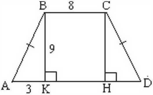 AB=CD по условию и ВК и СН - высоты, ВК-СН, т.к основания параллельны, отсюда следует, что АКВ подобен СНD.