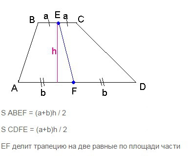Докажите, что отрезок, соединяющий середины оснований трапеции, делит её на две равные по площади части