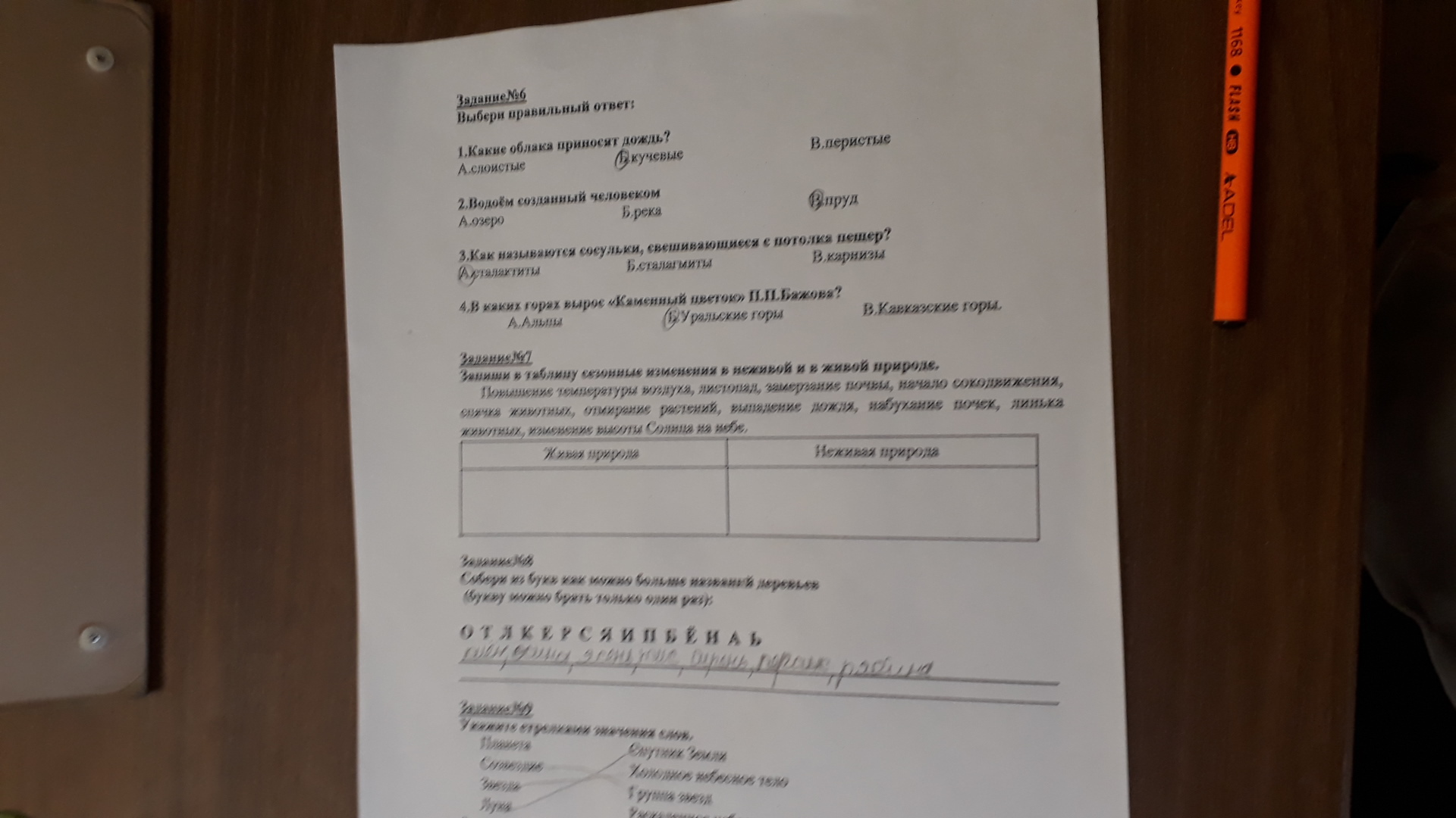 Живая:Листопад, Начало сокодвижения, спячка животных, отмирание растений, набухание почек, линька животных