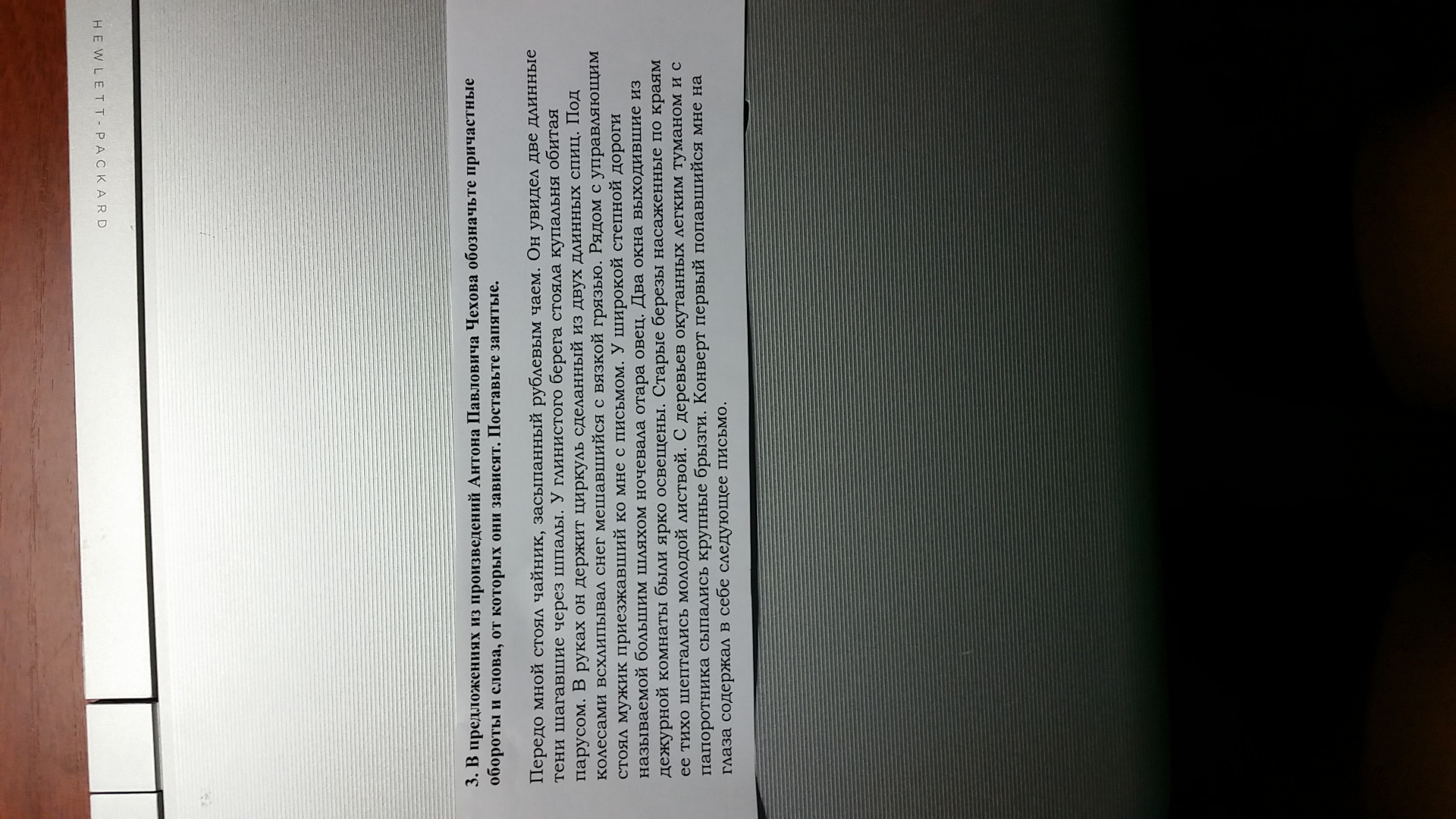 в предложениях из произведения Чехова обозначьте причастные обороты и слова, от которых они зависят. поставьте запятые.