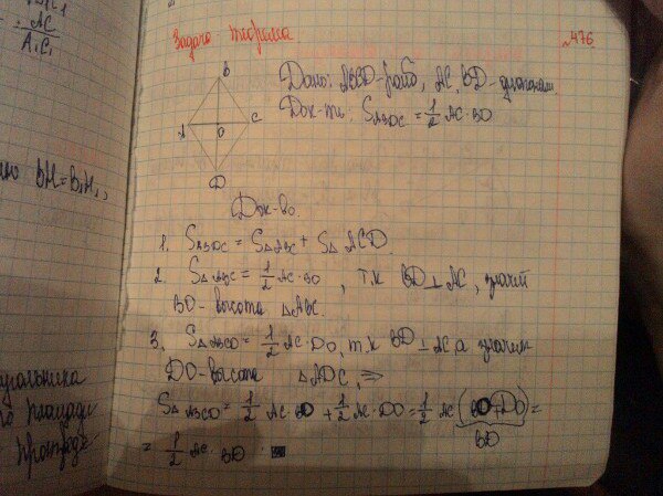 Докажите что площадь ромба равна половине произведения его диагоналей Вычислите площадь ромба Его диагонали равны 3,2 дециметра и 14 см