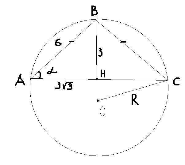 R=6 - радиус описанной окружности вокруг треугольника АВС, и радиус шара описанного вокруг конуса одновременно.