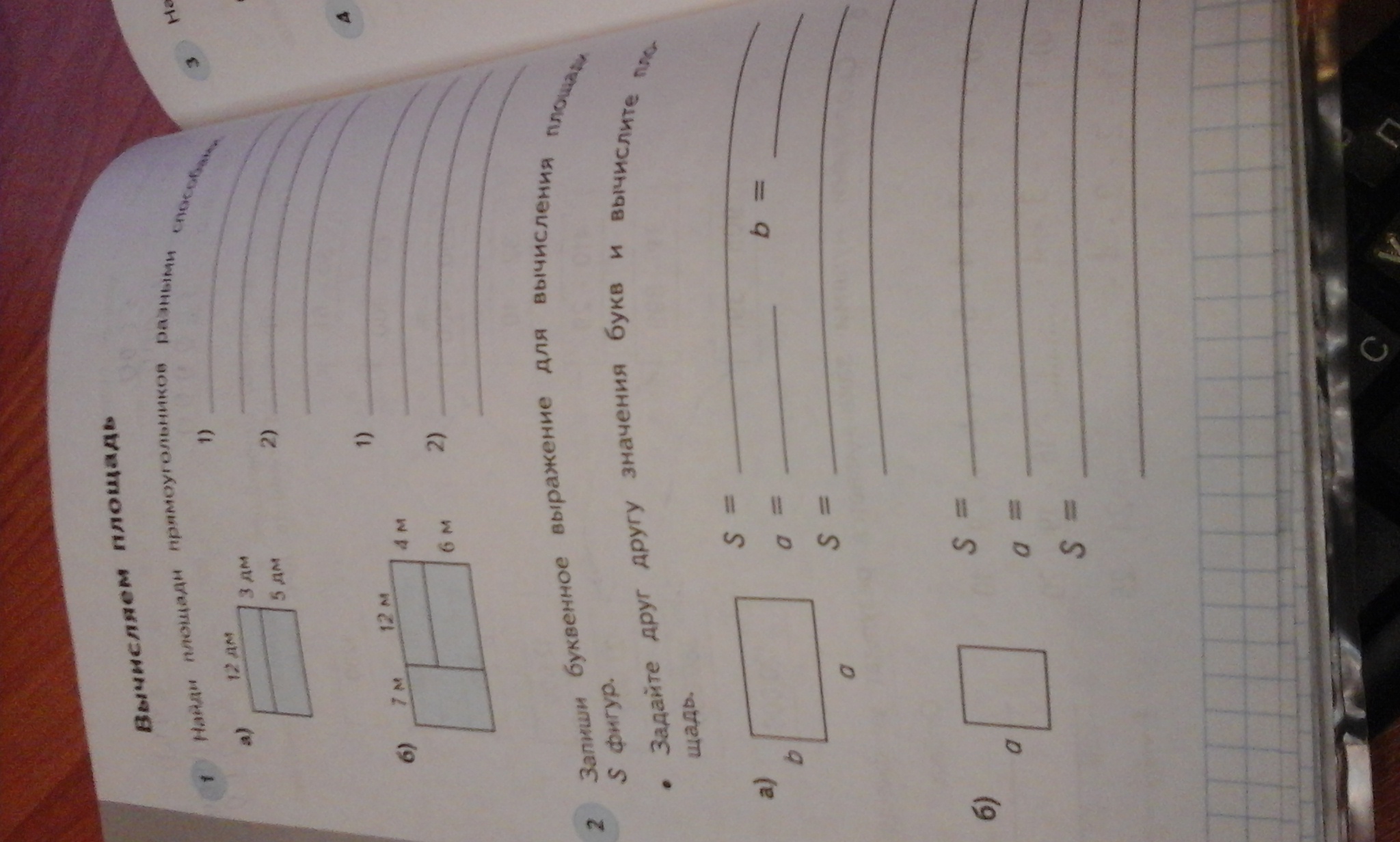 1) 12*3=36 дм^2 - S первого прямоугольника
