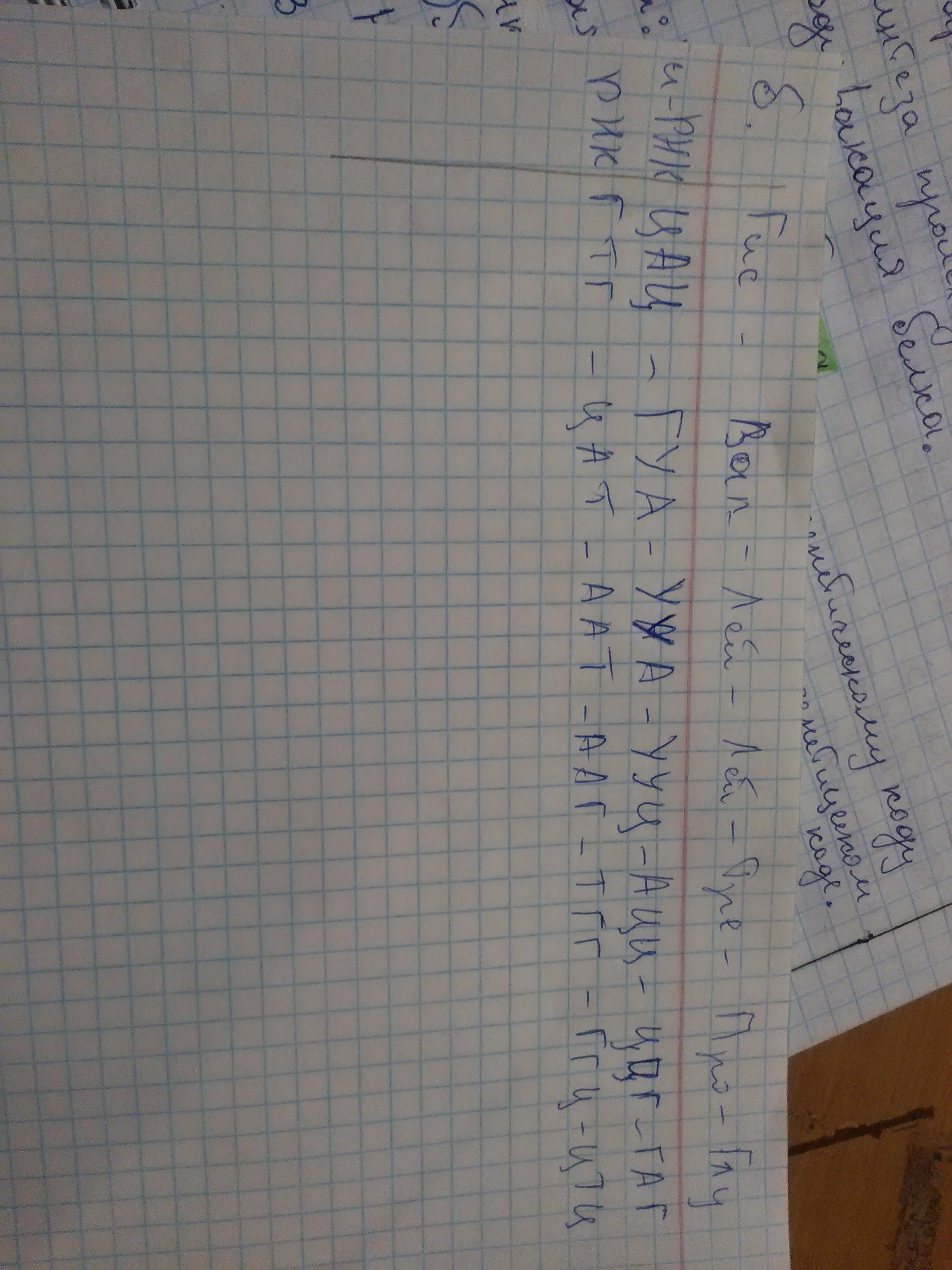 Часть полипептида имеет следующую структуру: Гис – вал – лей – лей – тре – про – глу. Определите последовательность нуклеотидов в цепях и-РНК и ДНК.