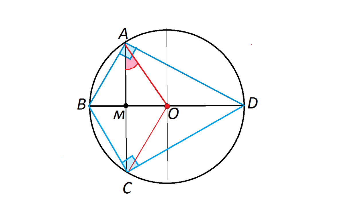 Углы ВАD и ВСD опираются на диаметр ⇒ они прямые=90°.
