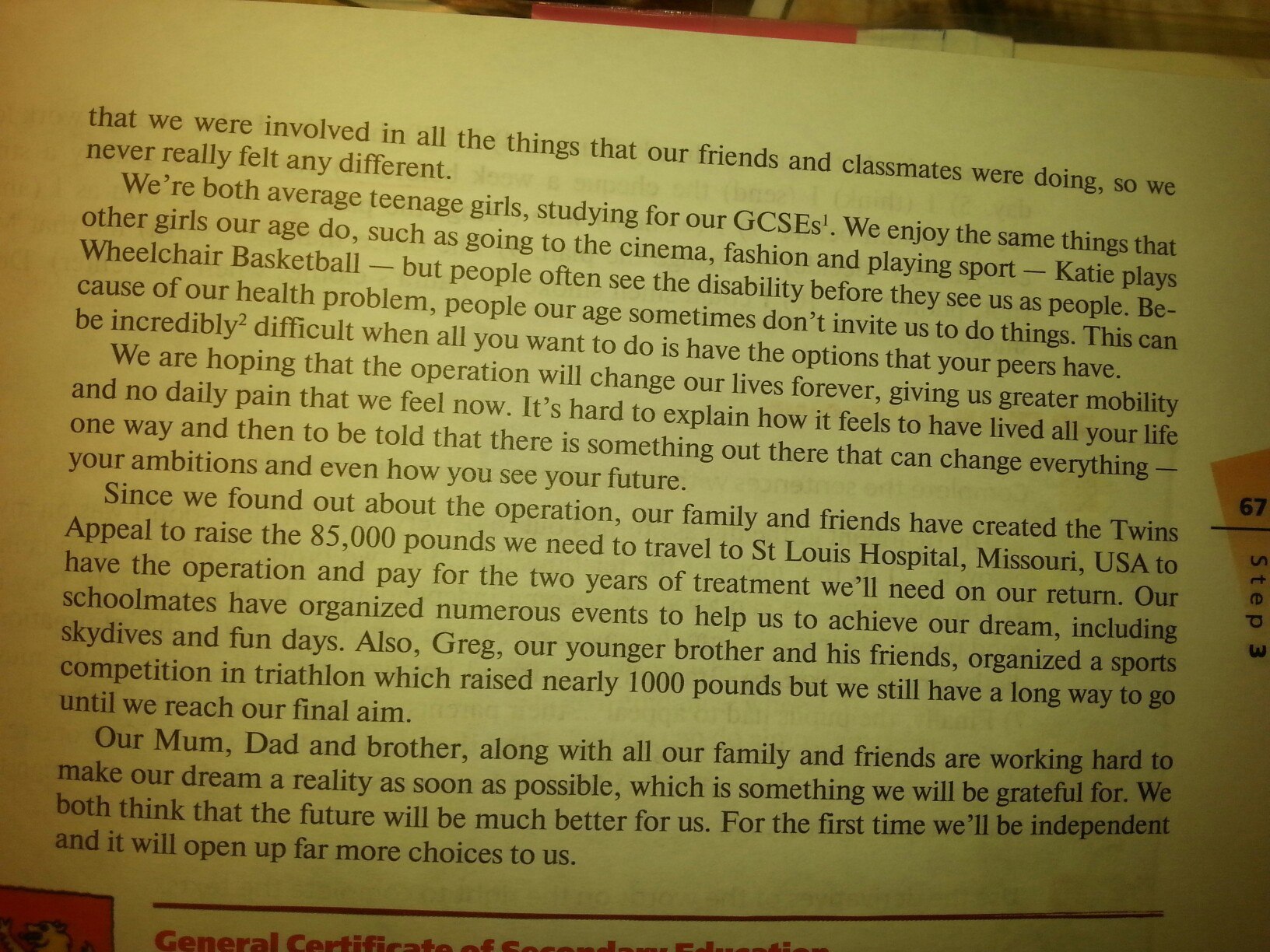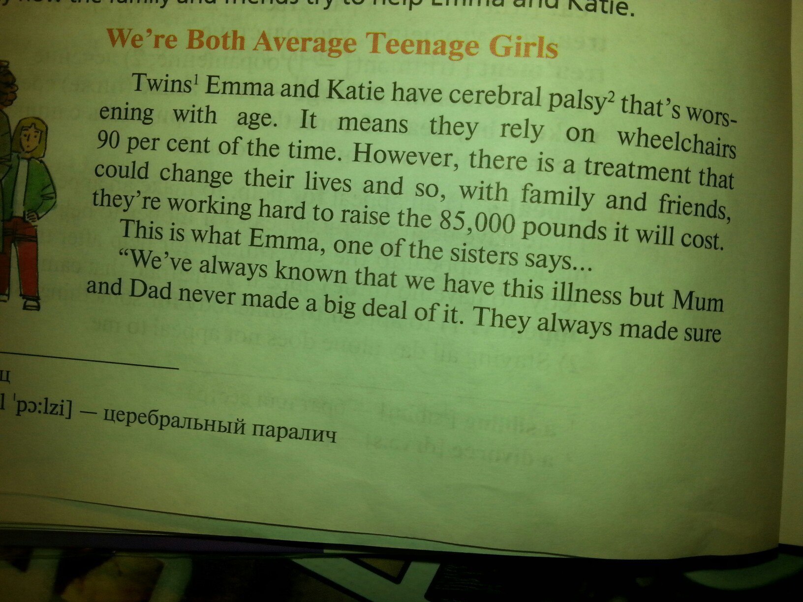 У близняшек Эммы и Кэти церебральный паралич, который ухудшается с возрастом. Это значит, что они зависят от инвалидных кресел 90% своего времени. Однако, существует лечение, которое может изменить их жизнь, и поэтому с семьей и друзьями они упорно работают, чтобы заработать 85,000 фунтов, в которые это обойдется.