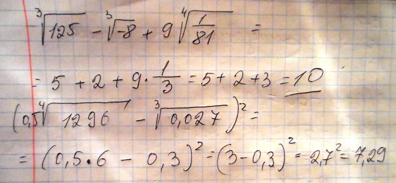 1) ³√125-³√-8+9⁴√1(дробь)81(тоесть одна восемьдесят первая)