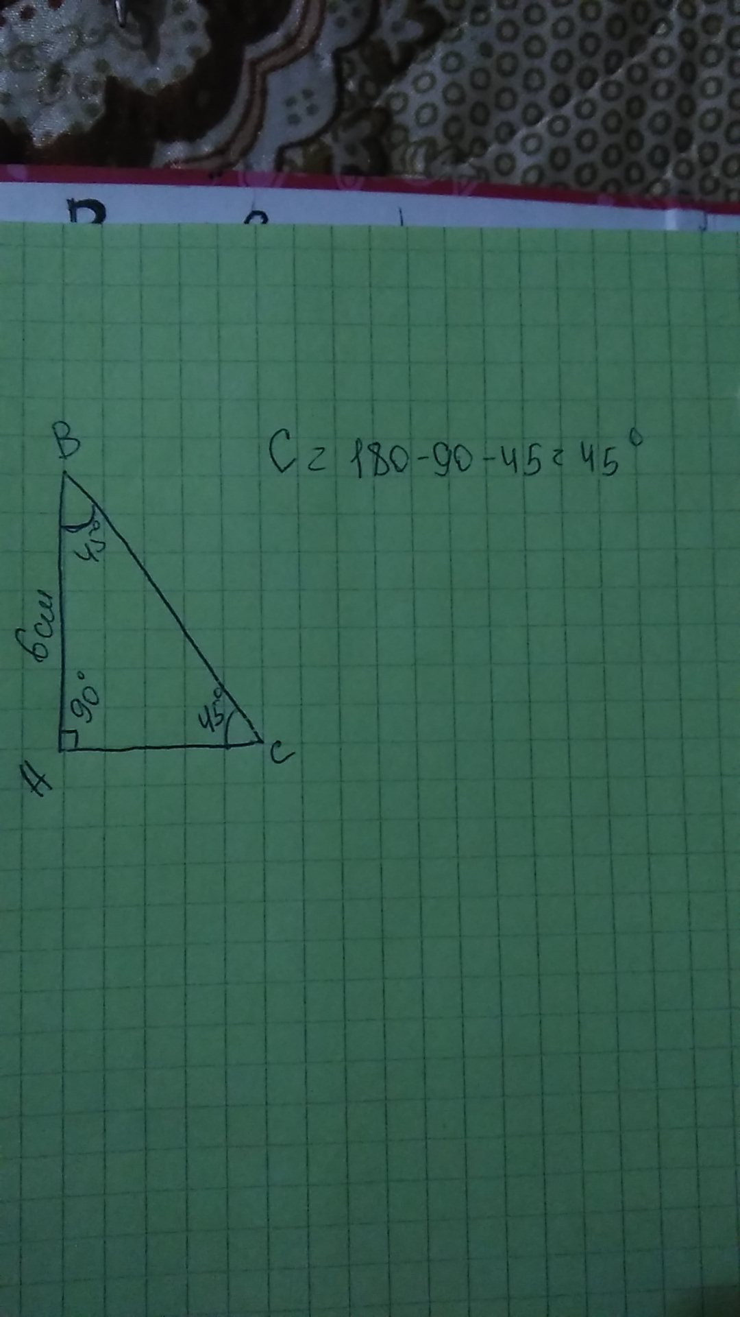 С помощью линейки и транспортира постройте треугольник и укажите его вид , если:одна сторона равна 6 см а углы прилежащие к этой стороне 90° и 45°