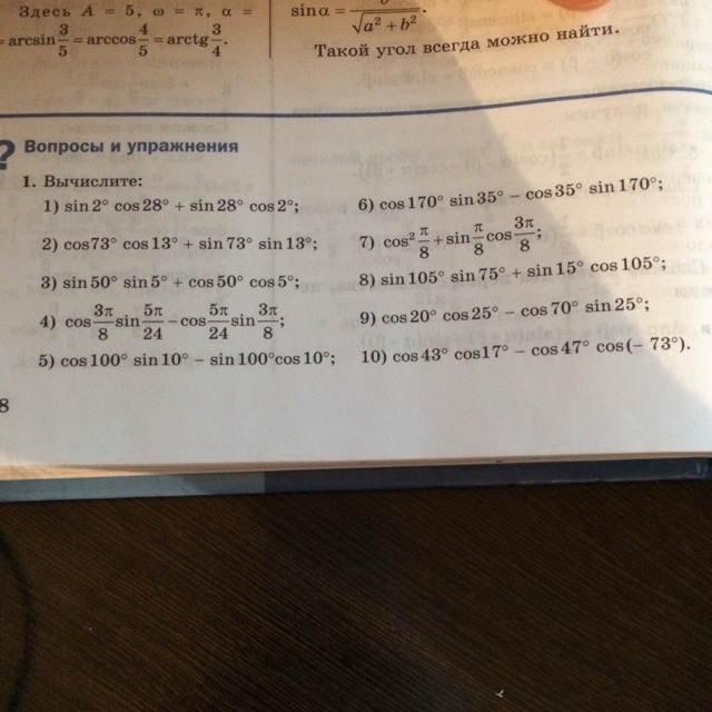 8)sin105°sin75°+sin15°cos105°=sin105°sin75°+sin(90°-75°)cos105°=sin105°sin75°+cos75°cos105°=cos(105°-75°)=cos30°=√3/2