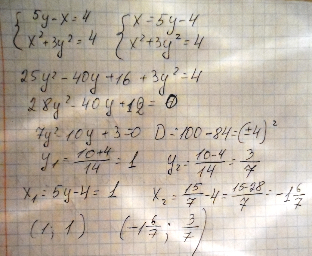 5y-3/7=4; 5y=31/7y; y2=31/35; Ответ: (1;1) и (3/7;31/35)