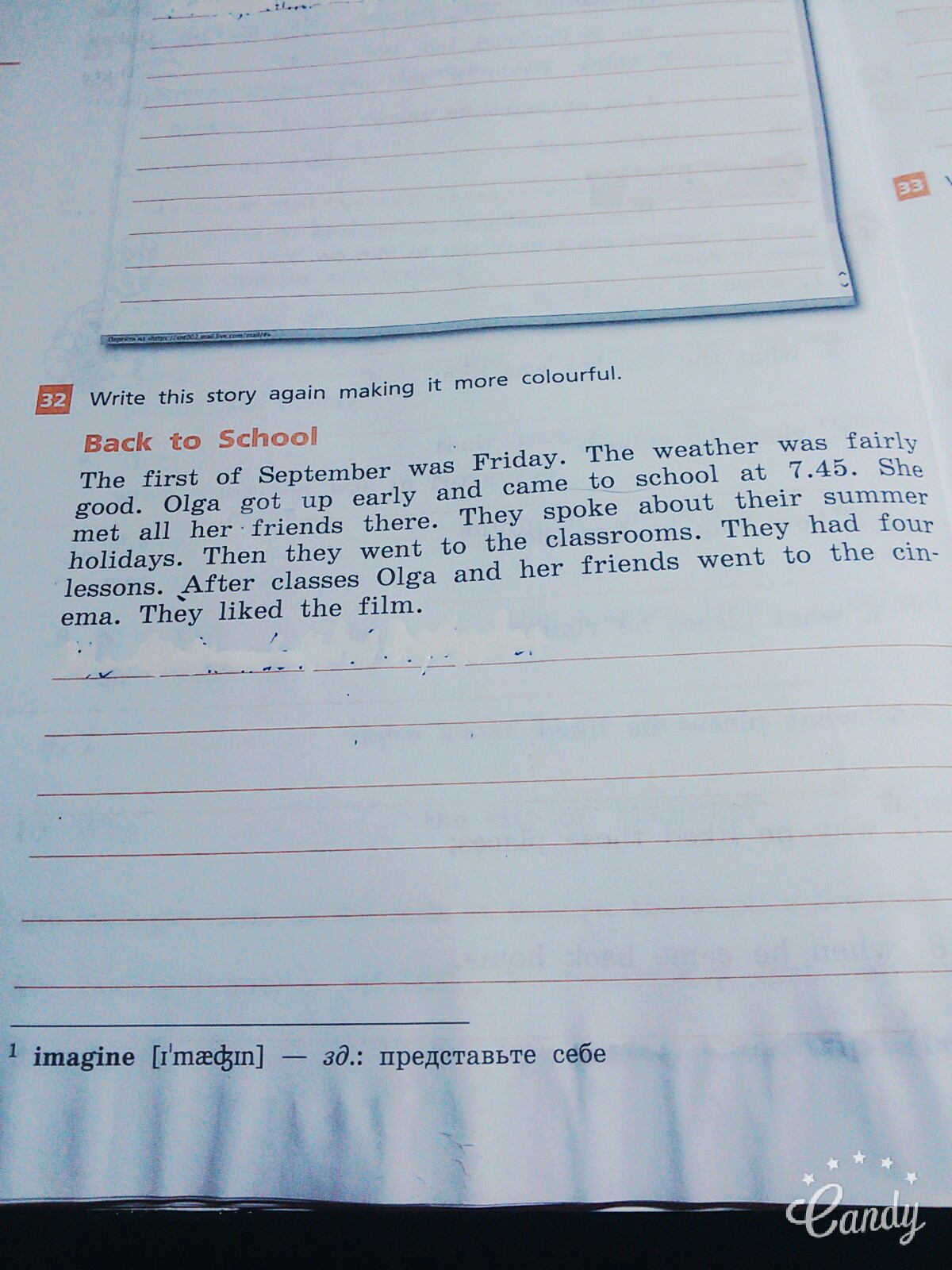 Then Olga has desided to invite them to herself on a visit after the movie. There they did interesting hand made articles, a portfolio for September first.