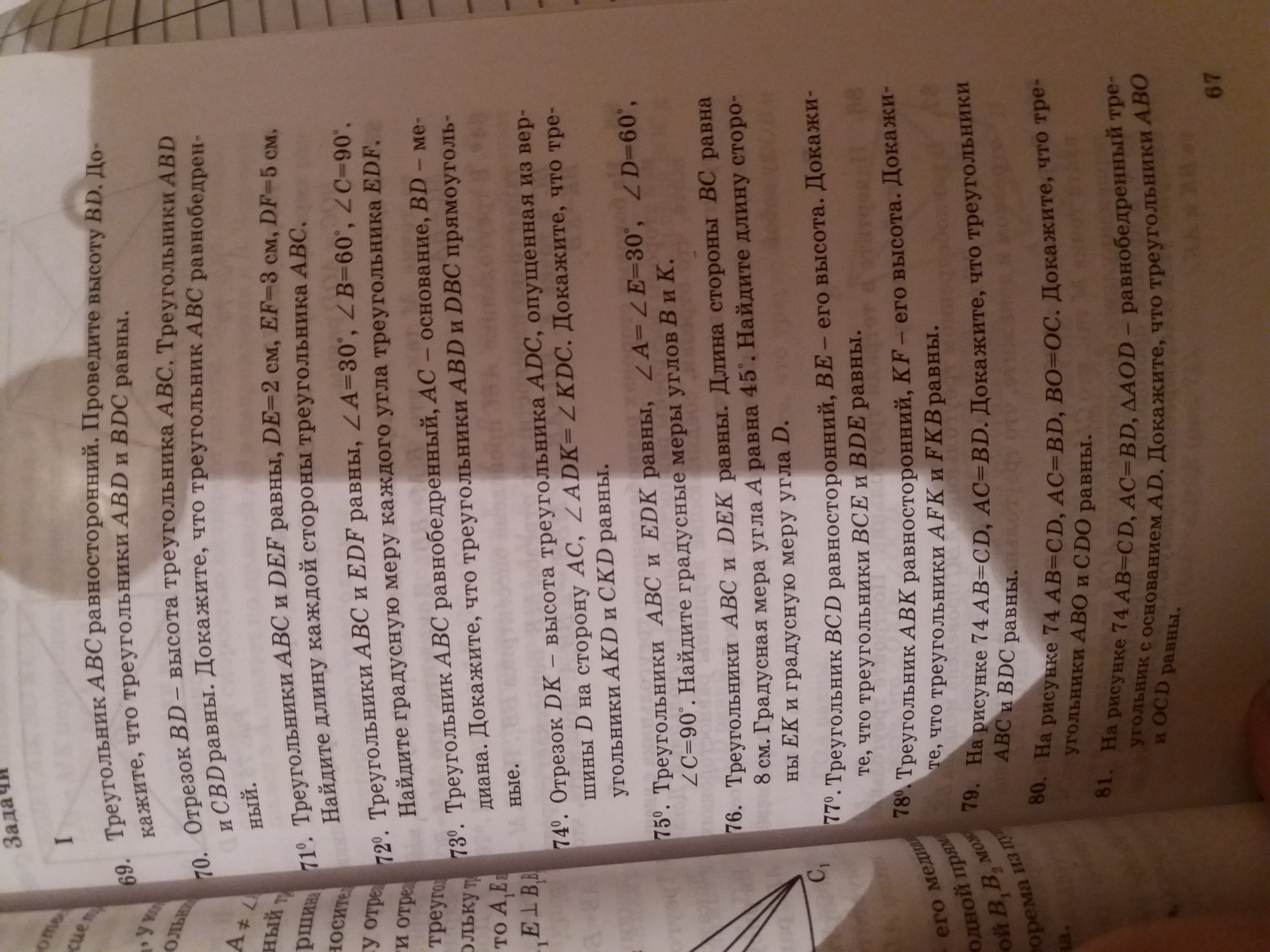 77)так как в данном примере высота является так же и биссектрисой, и медианой то мы можем воспользоваться признаком равенства треугольника: