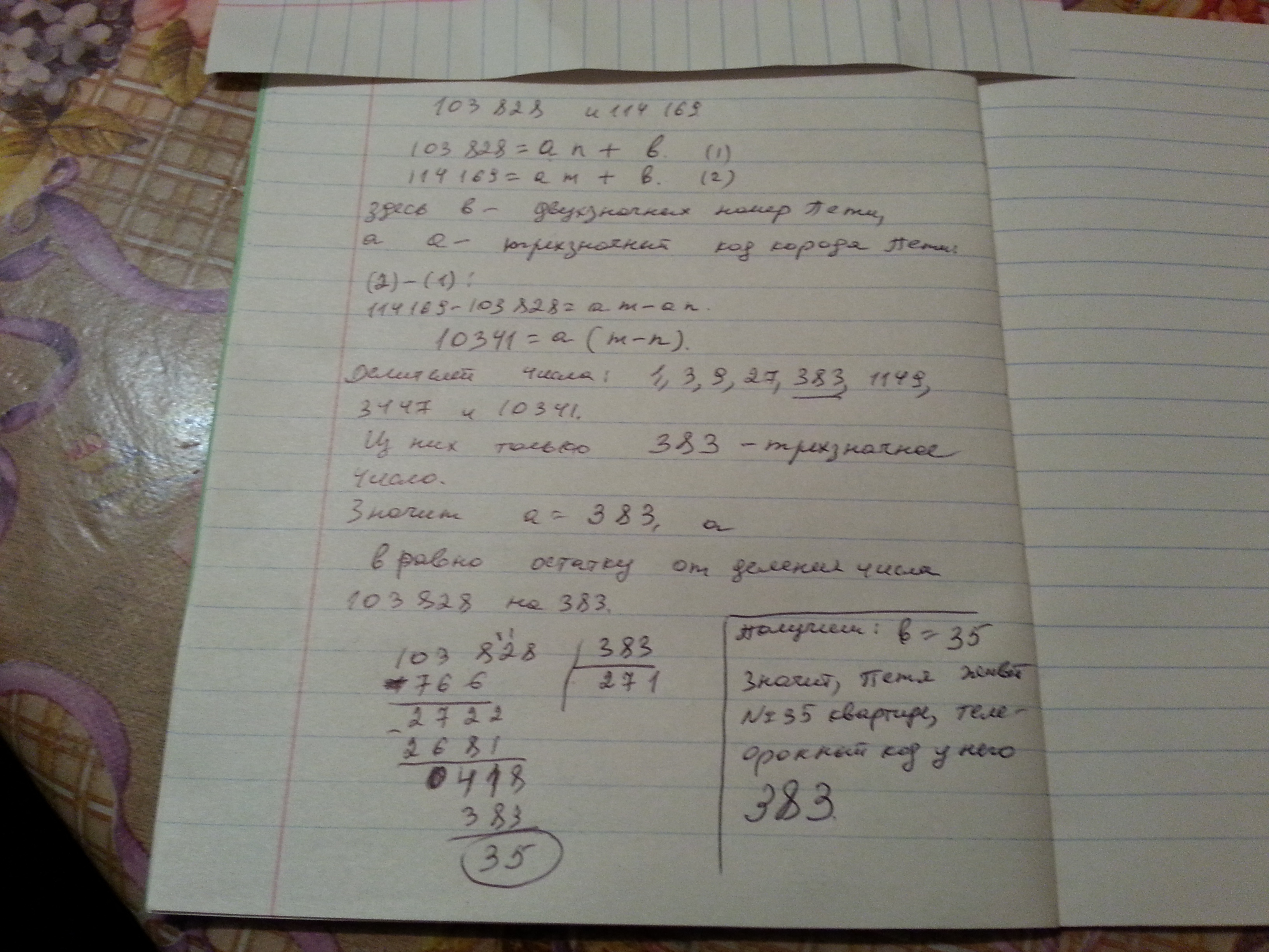 города Пети, равен двузначному номеру его квартиры. Определить в каком городе