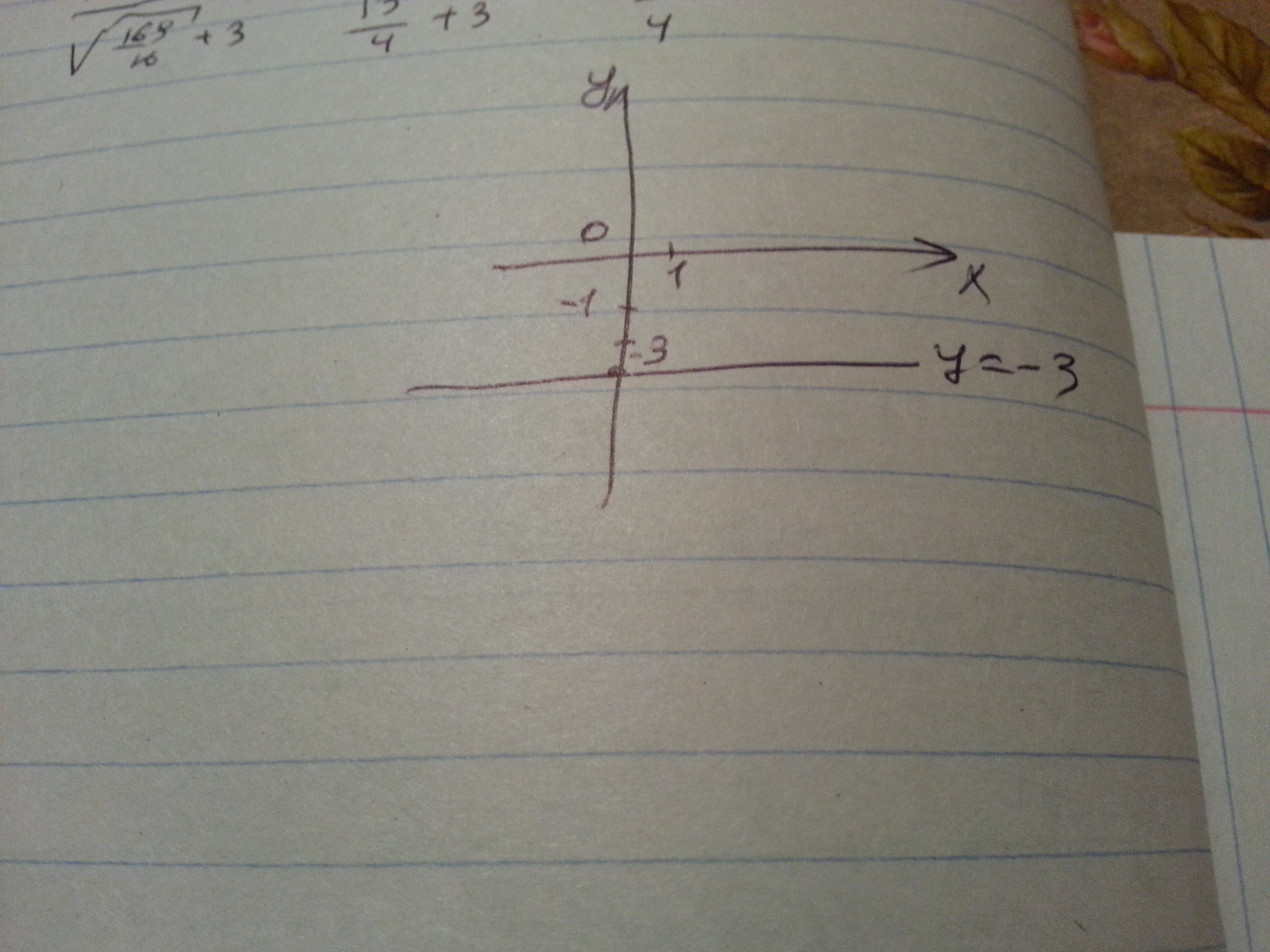 На оси y (ординат) от нуля отсчитываешь 3 единичных отрезка вниз и чертишь прямую параллельную оси x (абсцисс)