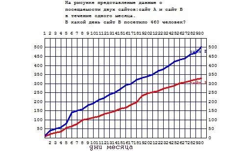 представленные данные о посещаемости двух сайтов сайта а и сайта в течении одного месяца .в какой день сайт посетило 460 человек?