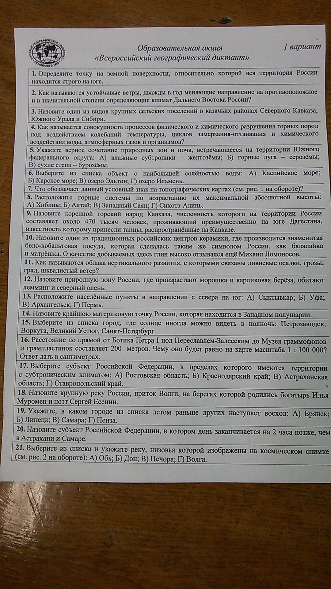 ВСЕРОССЙСКЙ ГЕОГРАФИЧЕСКИЙ ДИКТАНТ