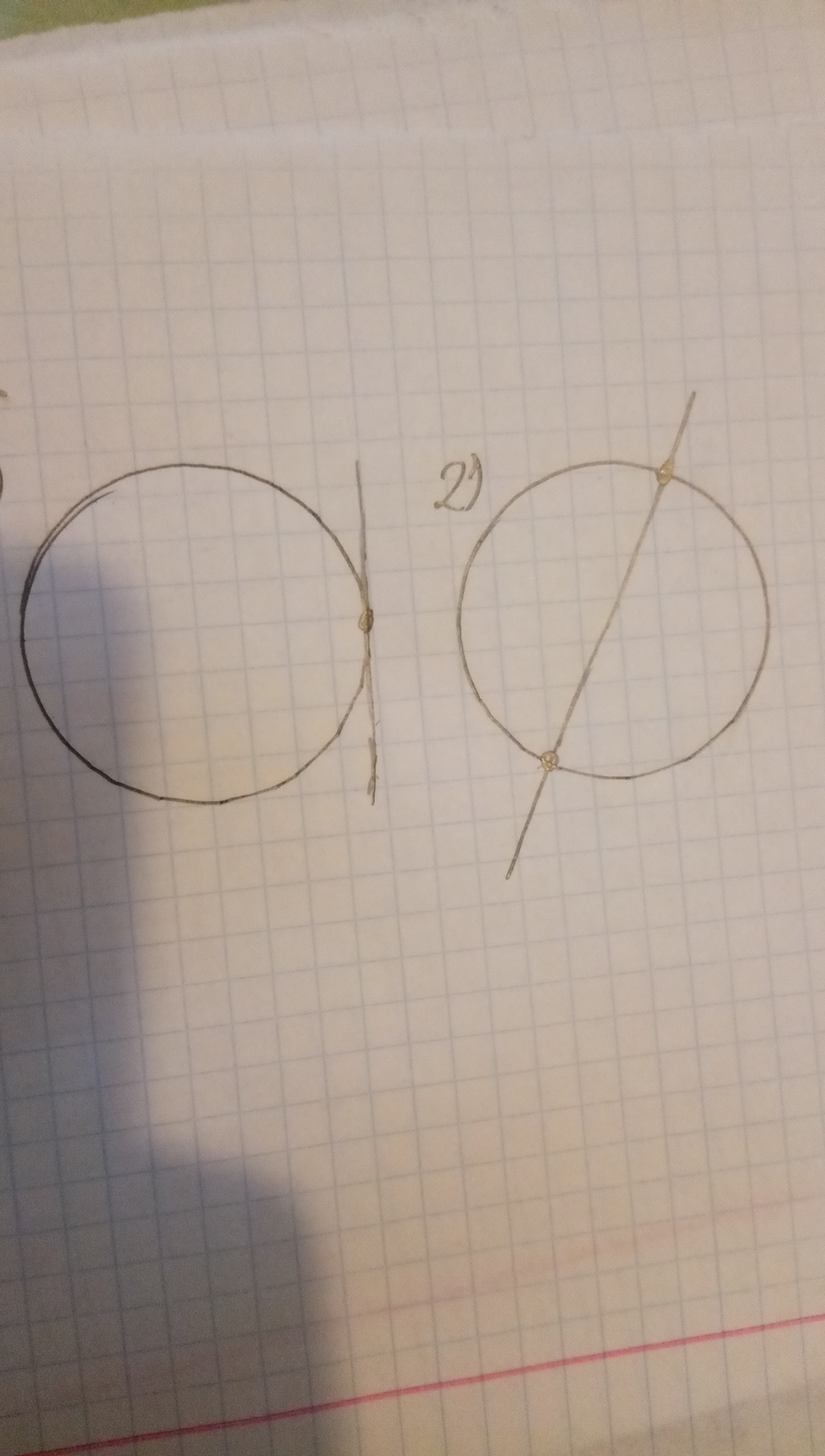 2)Начерти окружность и отрезок так, чтобы отрезок имел с окружностью: 1). только одну общую точку; 2) только две общие точки.