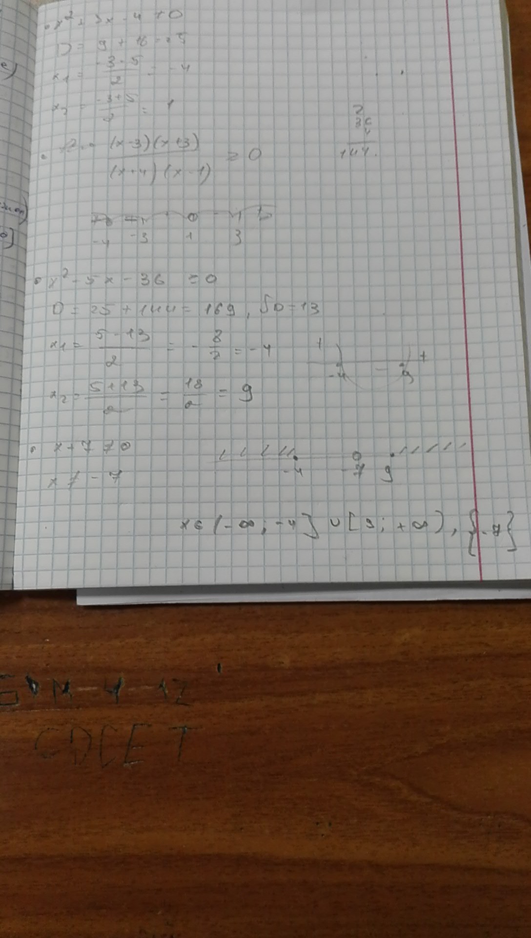 (-беск.;-7) объединение (-7;-4] объединение [9; + беск.)