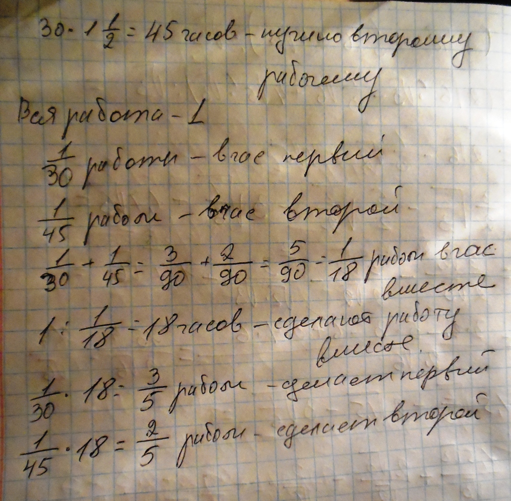 первый рабочий может выполнить задание за 30 часов а второй она Для этого необходимо в одну целую одну вторую раза больше времени чем первому За сколько часов они выполнят Это задание работая вместе какую часть задания при этом выполняет каждый из них