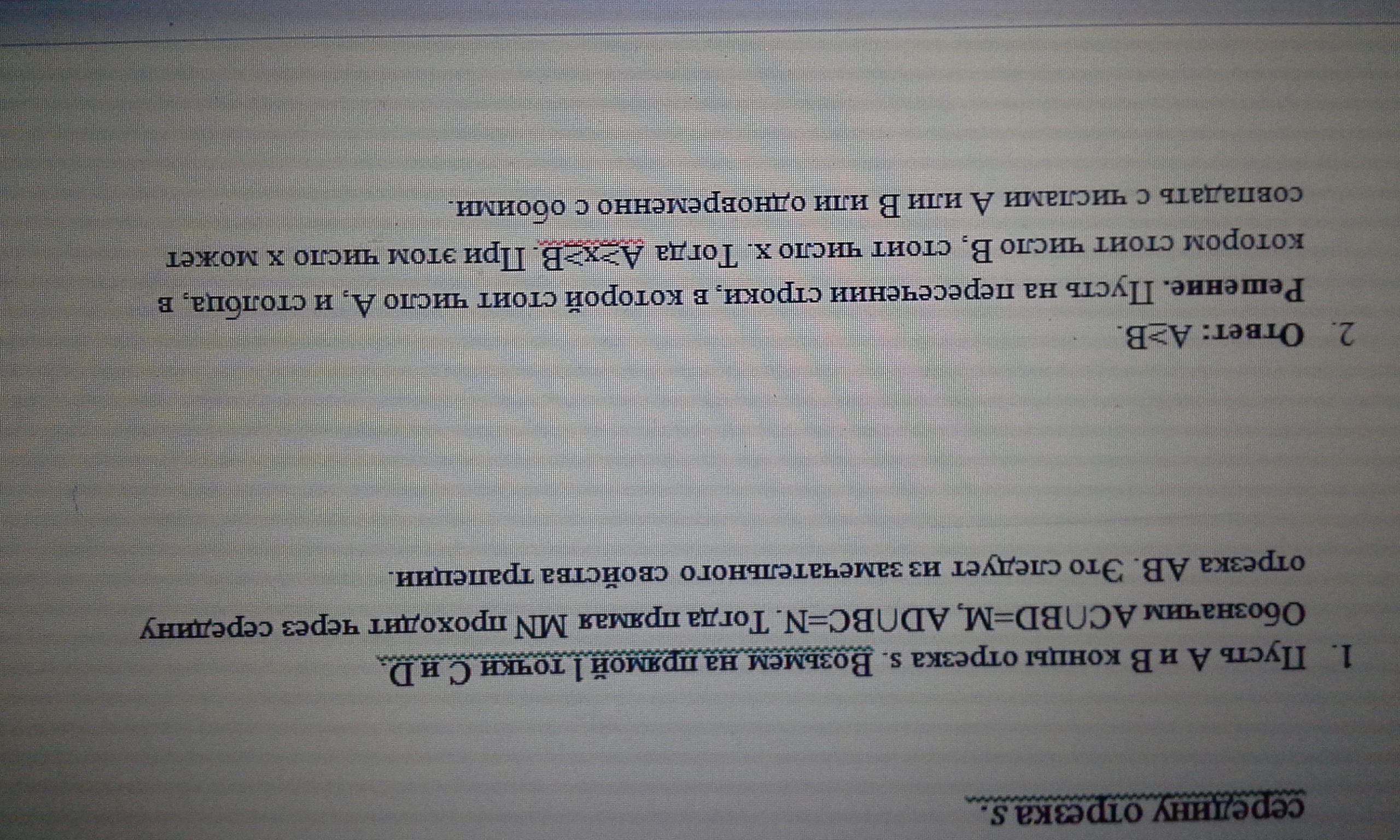 на плоскости даны прямая l и отрезок s, лежащий на прямой, параллельной l .исползуя линейку постройте середину отрезка