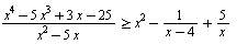 (x^4-5x^3+3x-25)/(x^2-5x)>=(x^4-4x^3+4x-20)/(x(x-4))