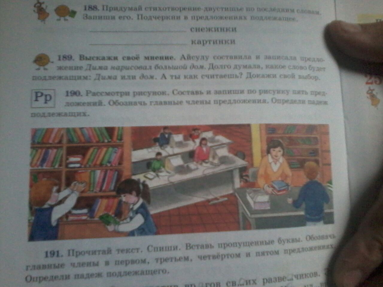 Рассмотри рисунок.Составь и запиши по рисунку пять предложений.Обозначь главные члены предложений.Опредили падеж,падлежащих.
