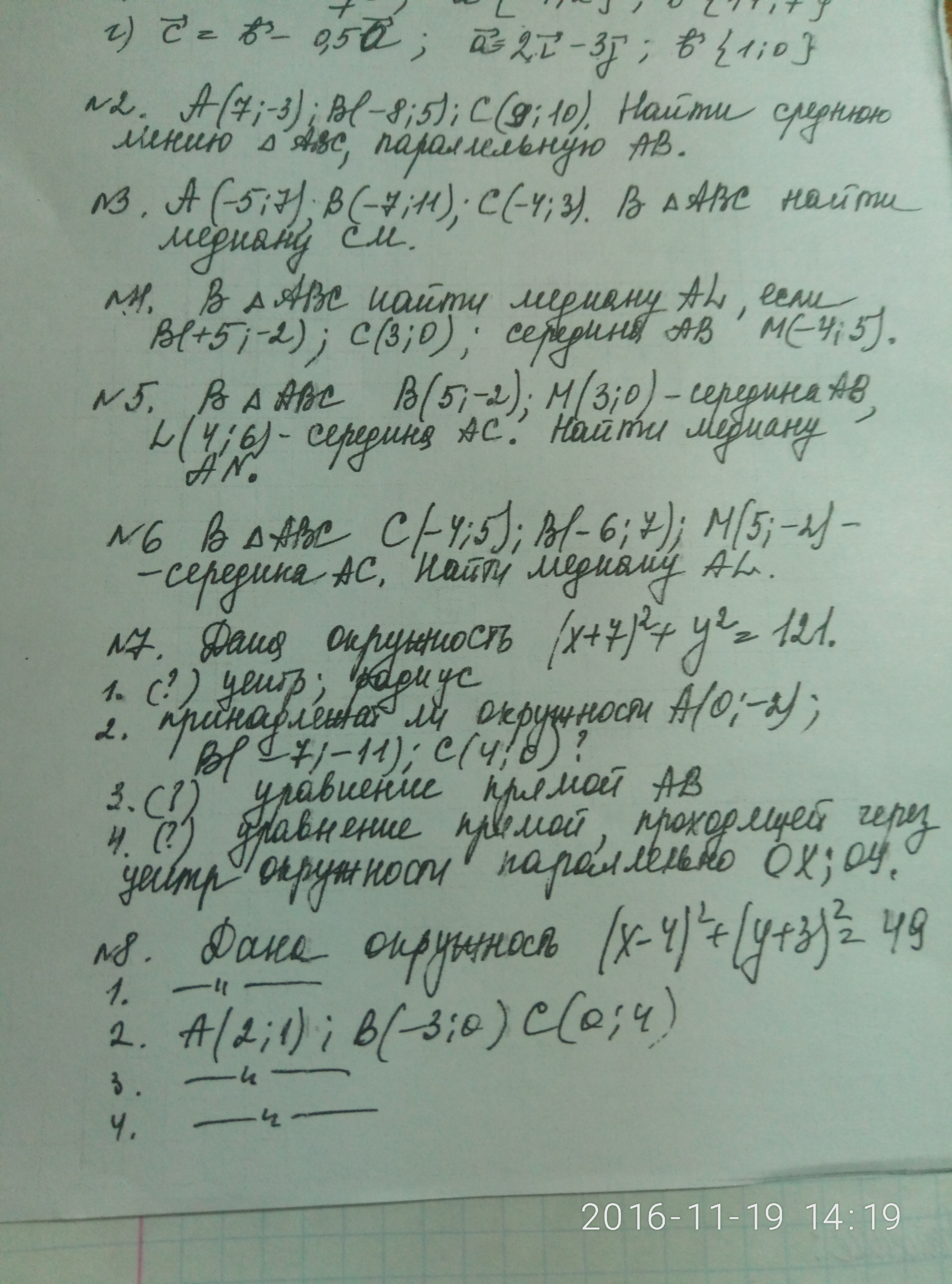 7, 2) точка А не принадлежит данной окружности, ее координаты не удовлетворяют уравнению (х+7)²+у²=121.