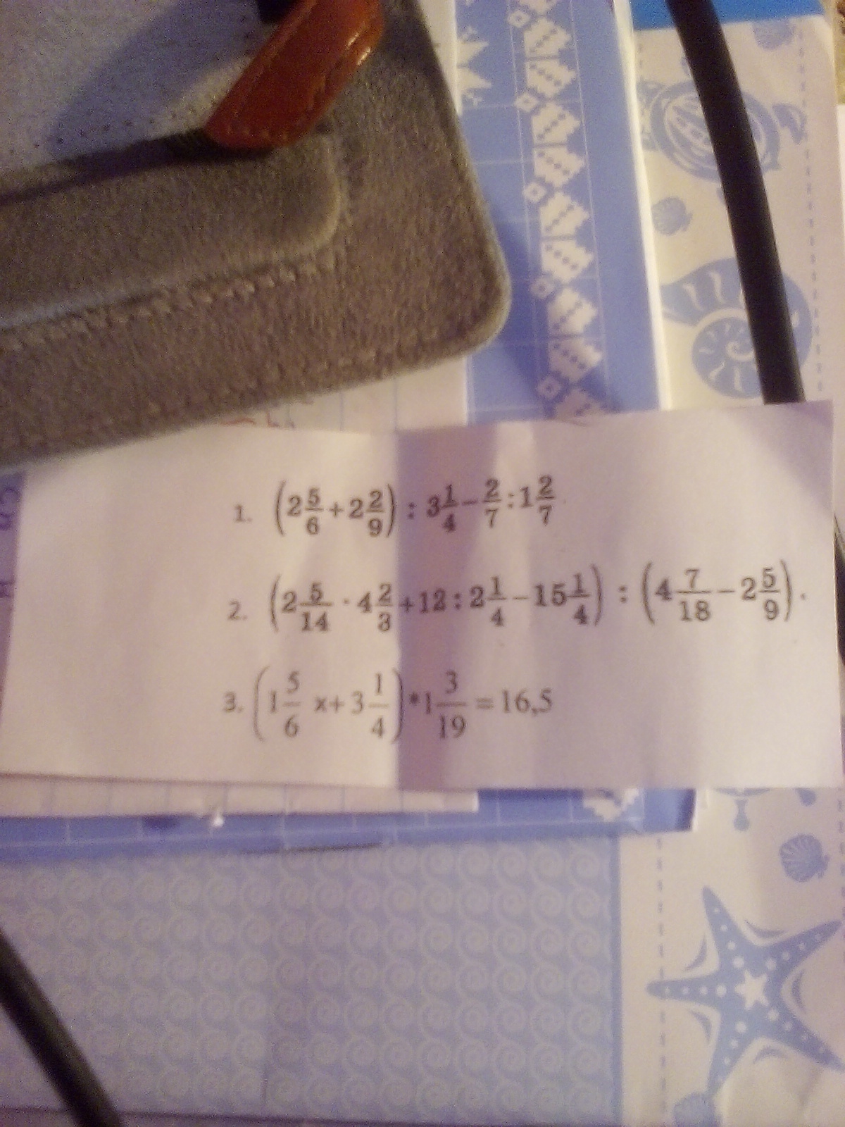 1) (2.5/6+2.2/9):3.1/4-(2/7:1.2/7)=4.17/9:3.1/4-2/9=2.13/20-2/9=2.77/180