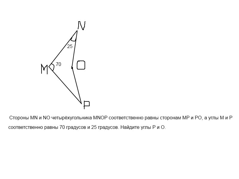 соединим точки М и О. Получим два равных треугольника (три стороны одного треугольника равны трем сторонам другого треугольника)